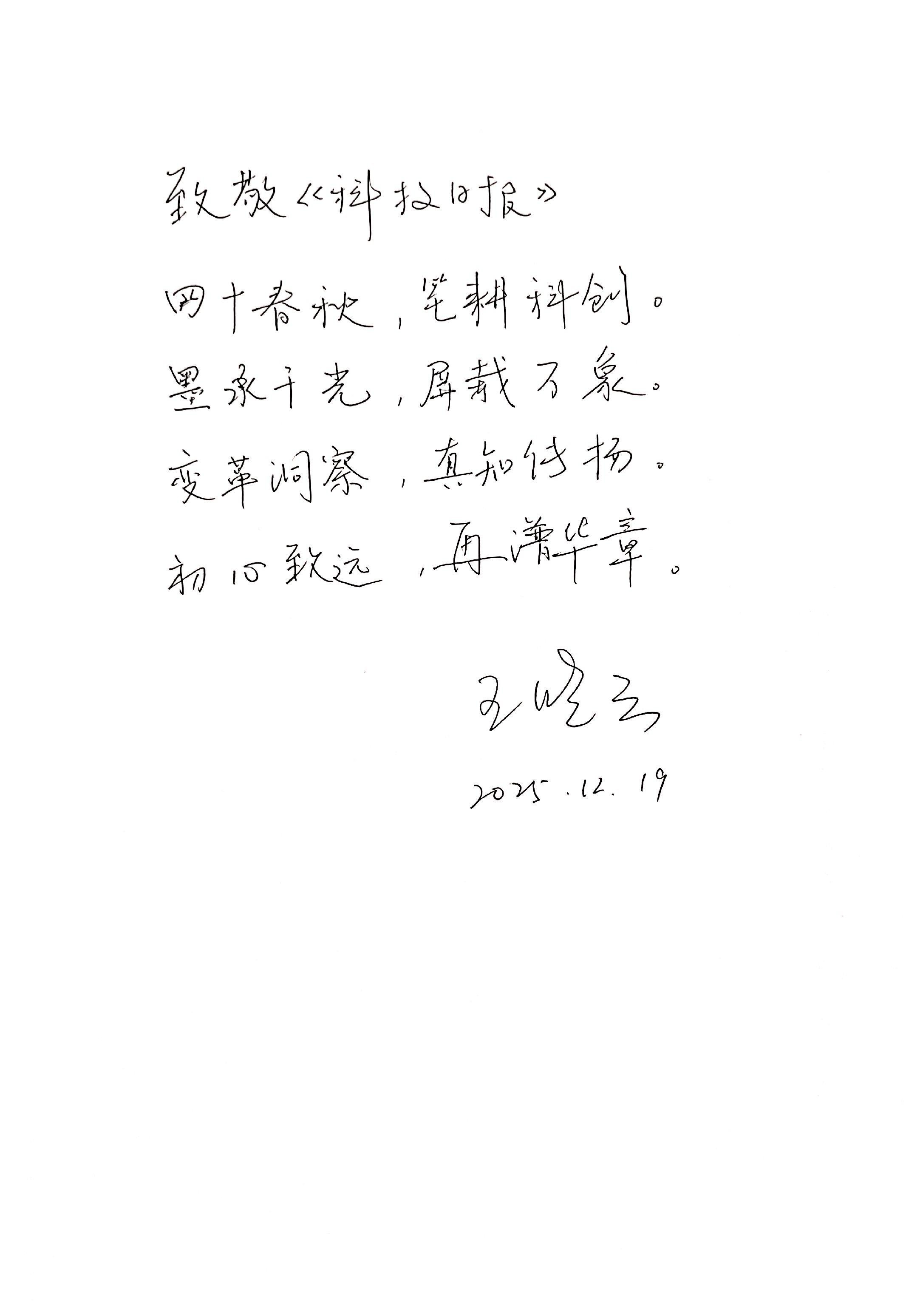 作品名:四十春秋,笔耕科创。墨承千光,屏载万象。变革洞察,真知传扬。初心致远,再谱华章。