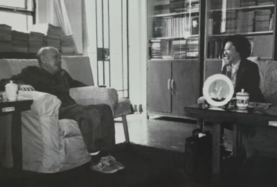 1989年,钱学森与钱学敏在一起交流