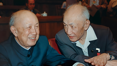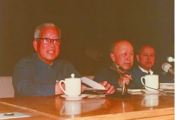 1987年5月15日,钱学森先生(中)应袁宝华老校长之邀来中国人民大学演讲