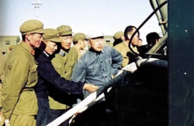 中国科学院院士、中国工程院院士钱学森(左四)在发射现场指导