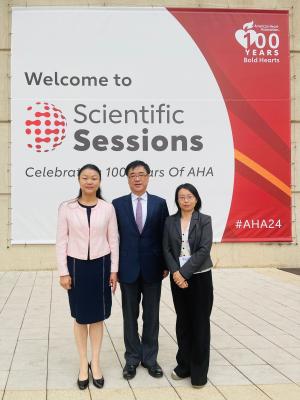 2024年11月16日,中国工程院院士、上海交通大学医学院附属瑞金医院院长宁光(右三)在美国心脏协会(American Heart Association, AHA)百年庆典暨2024年科学会议现场