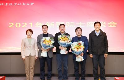 2021年11月20日下午,中国工程院院士、北京航空航天大学校长徐惠彬(右一)在北京航空航天大学2021年新晋院士座谈会上与年三位新晋院士王云鹏(左二)、钱德沛(左三)、王自力(右二)合影