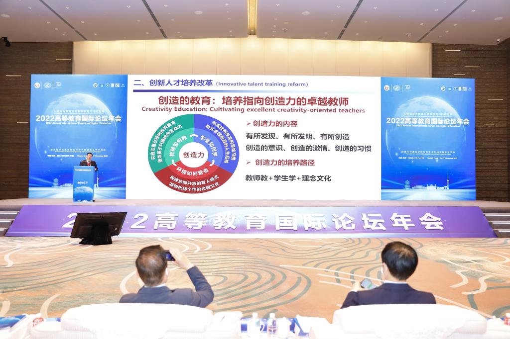 中国科学院院士、我校校长刘益春应邀出席论坛并做了题为《创造力指向的大学治理改革》主论坛报告。他在报告中指出,强国必先强教,强教必先强师。创新型人才培养需要从基础教育抓起,需要一大批具有创造力的中小学教师,师范大学在创新型国家建设中具有基础性、先导性、战略性地位。针对师范生创造力培养难的国际教师教育难题,刘益春介绍了我校“指向创造力卓越教师培养模式”的探索与实践,学校基于“学术强师”发展战略,提出“创造的教育”理念,确立以创造力为核心特质的卓越教师培养规格,构建突出学科思想与教育转化的融合型课程体系,注重实施 “知识形态转变”的过程性探究教学模式,创建聚焦创新教学迁移与反思研究的进阶型教育实践,打造注重科教融合的学术性保障长效机制。从培养规格、课程体系、教学模式、教育实践和体制机制等方面进行系统变革,保障师范生学科理解力、学科转化力、实践迁移力、反思研究力的协同发展,生成创造力。刘益春强调,学校以6个国家“双一流”建设学科统领5大学科集群协同支撑20个师范专业高质量发展。创建科研与教学一体化的新型PI制,明确PI团队为课程建设主体,保障教师把科研中养成的批判反思习惯、归纳总结方法等融入教学,从组织、制度与文化上保障高水平科研支撑高质量教学。新时代新征程,刘益春表示,学校将坚持以习近平新时代中国特色社会主义思想为指导,深入学习贯彻党的二十大精神,持续发挥好科技第一生产力、人才第一资源和创新第一动力结合点作用,不断推动创造力指向的一流师范大学治理改革,为全面建设社会主义现代化国家做出新的贡献。