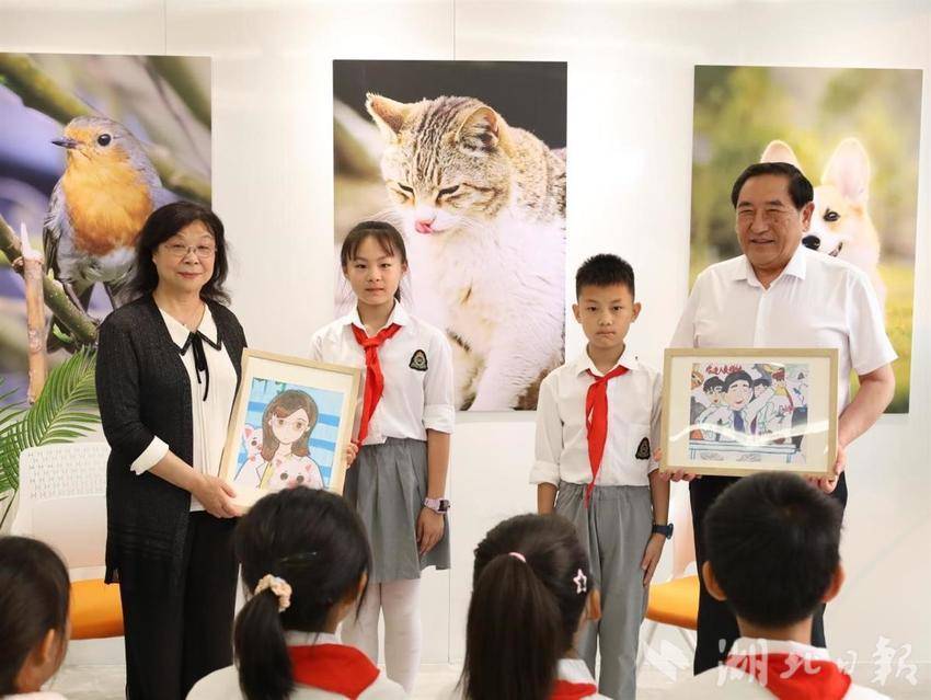 8名少先队员来自华中农业大学附属学校。两位院士与他们进行深入而充满趣味的交流,引导他们对培养科学探索精神,树立远大理想、投身科研报国的思考。两名少先队员将创作的肖像画赠送给院士,院士则向孩子们赠送科普读本并写下殷殷寄语。