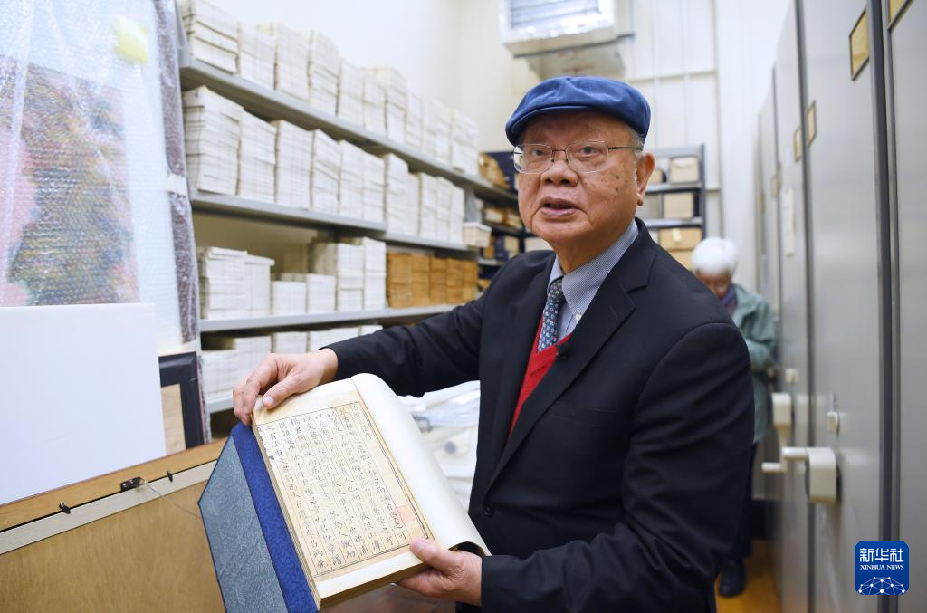 李焯芬在饶宗颐学术馆内的“选堂文库”展示古琴谱(1月24日摄)。新华社记者 陈铎 摄
