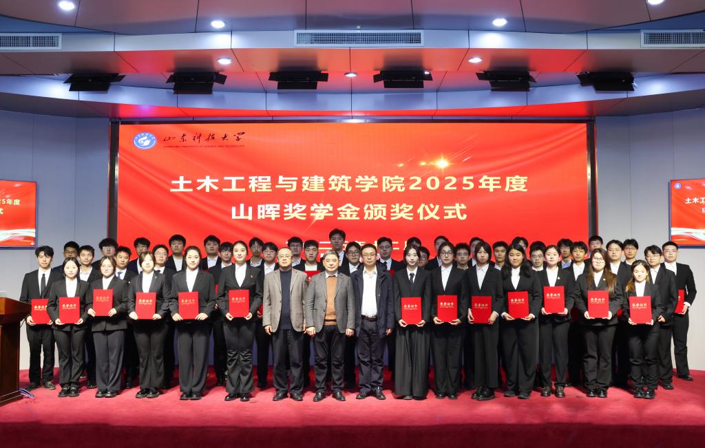 报告会后,为激励青年学生见贤思齐,勇攀科学高峰,向以刘泉声院士为代表的杰出科学家们学习,土建学院举行山晖奖学金颁奖仪式。刘泉声院士、陈绍杰共同为获奖学生代表颁发证书。刘泉声院士深情寄语,勉励同学们要珍惜学习时光,夯实专业基础,传承坚韧不拔、发奋图强的科大精神和陈子荫先生学术思想,树立远大理想,努力成长为可堪大用、能担重任的栋梁之才。