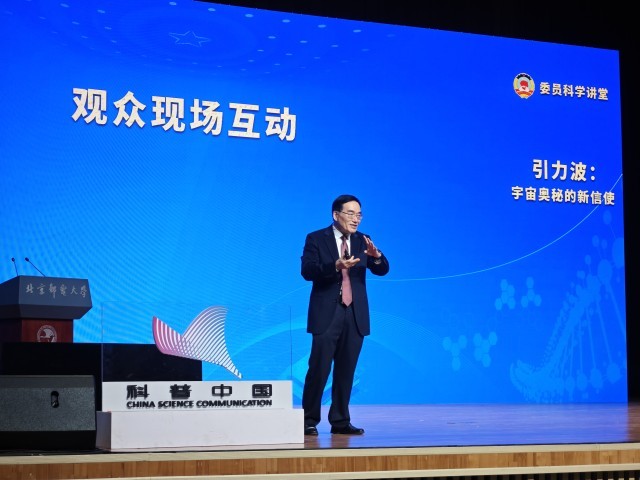 当天,“委员科学讲堂”在北京邮电大学举行。蔡荣根以“引力波:宇宙奥秘的新信使”为主题,从理论预言、实验探测和科学意义等多个维度,向包括大中学生在内的700多名听众介绍了引力波的前世今生和未来展望。