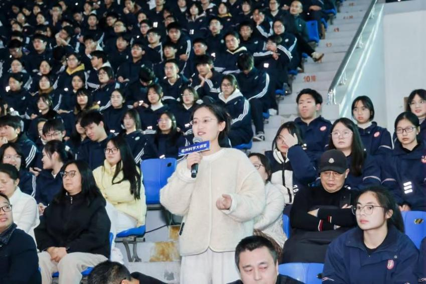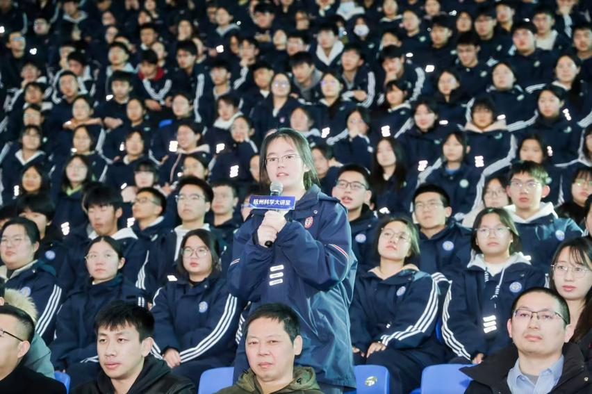 在随后的互动环节中,现场师生围绕科研心路、学业规划、学科发展等话题积极提问。朱冰院士结合自己的求学与科研经历,一一予以细致解答。他勉励青年学子要从小培养科学思维和探索精神,学会从身边细微之处发现问题、思考问题,敢于坚持自我,勇于迎接挑战,在创新的道路上大胆前行。他恳切的言辞与殷切的期望,赢得了现场阵阵掌声。