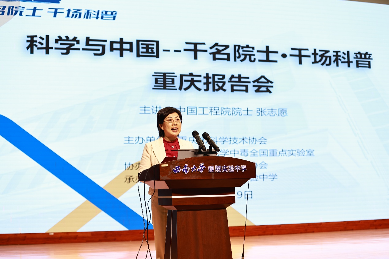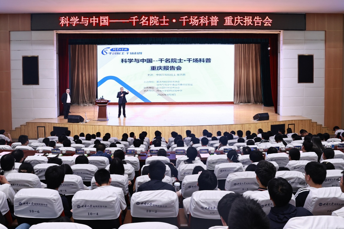 4月9日,“科学与中国——千名院士·千场科普”重庆报告会在西南大学银翔实验中学举行。中国工程院院士、医药卫生学部常委、中国医学科学院学部委员张志愿走进学校,为近千名师生带来一场高水平的科普讲座。本次活动旨在弘扬科学家精神,推动科学素养在青少年成长关键阶段生根发芽,营造热爱科学、崇尚创新的良好氛围。