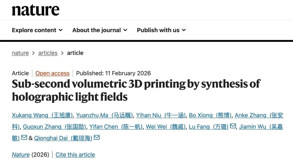 刷新纪录!清华团队研发亚秒级3D打印技术登上《自然》,0.6秒成型毫米级复杂结构